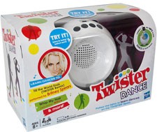Britney Spears + dance music + Twister = Twister Dance. Hasbro’s just announced Britney Spears’ participation in the new Twister Dance game that features current dance music but with a Twister twist. Spears even contributes a custom Twister remix of her “Till the World Ends” for the Hasbro game. Other tunes featured include tracks from Ke$ha and Willow Smith, and an exclusive song called “Caught Up in a Twister.”