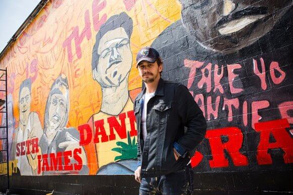James Franco is pretty much a jack-of-all-trades, isn’t he? Franco seems to be able to find multiple outlets for his creative abilities outside of acting, writing, and directing … let’s agree not to talk about his Oscar-hosting gig, shall we? And in support of the R-rated comedy movie This is the End, Franco showed off his painting skills by creating drawings used to decorate the set. He also painted two murals featuring the cast of the film: one located at Melrose & Fairfax in Los Angeles, and the other located in Brooklyn at Bedford & Grand.