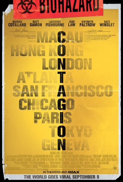 Contagion follows the rapid progress of a lethal airborne virus that kills within days. As the fast-moving epidemic grows, the worldwide medical community races to find a cure and control the panic that spreads faster than the virus itself. At the same time, ordinary people struggle to survive in a society coming apart.