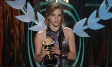 It was up to Emma Watson to represent the huge ensemble cast of Harry Potter and the Deathly Hallows Part 2 on stage at this year’s MTV Movie Awards, and she handled her acceptance duties with style and grace. Watson took to the stage to accept the Best Cast award, thanking the fans on behalf of her missing co-stars, in particular Daniel Radcliffe and Rupert Grint.