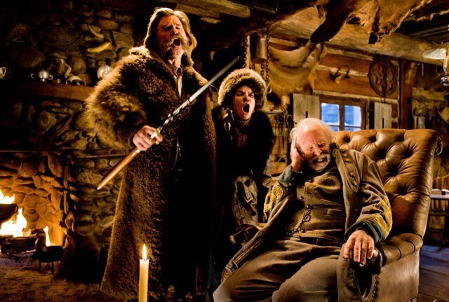 In The Hateful Eight, set six or eight or twelve years after the Civil War, a stagecoach hurtles through the wintry Wyoming landscape. The passengers, bounty hunter John Ruth (Kurt Russell) and his fugitive Daisy Domergue (Jennifer Jason Leigh), race towards the town of Red Rock where Ruth, known in these parts as “The Hangman,” will bring Domergue to justice.