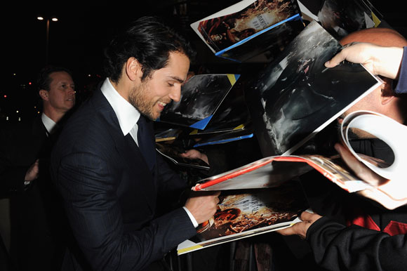Henry Cavill signs autographs for fans at the Immortals premiere in LA - (Photo by Jason Merritt/Getty Images for Relativity Media)In this video courtesy of Relativity Media, Henry Cavill (the new Superman) talks about tackling the role of a peasant named Theseus who must stand up to a mad king (played by Mickey Rourke) in Immortals. Cavill also discusses physically preparing for Immortals, the fight scenes, and what audiences will get out of the action-heavy 3D film.