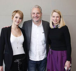 The Hunger Games: Catching Fire star Jennifer Lawrence and director Francis Lawrence answered questions from fans submitted via Tumblr in a chat with Yahoo CEO Marissa Mayer on November 6, 2013. The fan Q&A was part of the film’s Global Fan Day and Lawrence was asked everything from who she had a crush on as a teen to what’s up with her short hair to what was the funniest moment on the set of the second Hunger Games movie.
