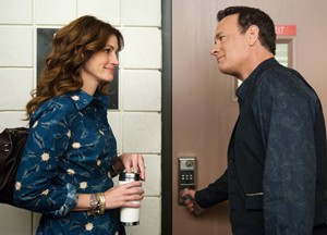 This brings us to the leads; Hanks and Roberts. Visually, there’s something wrong with both of them. Either Hanks has had some plastic surgery done or the lighting and make-up department hate him; and almost every time Roberts is on-screen, she’s shot in a close-up with a super soft focus … only hand-drawn arrows and flashing text could make it more obvious that the goal is to hide any imperfections at whatever cost.