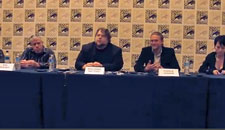Filmmaker Guillermo del Toro joined his Pacific Rim cast – Charlie Hunnam, Ron Perlman, Rinko Kikuchi, and Charlie Day – at the 2012 San Diego Comic Con to talk about this robots versus monsters movie coming to theaters in 2013. del Toro, who normally loves to talk to journalists about his movies, has been keeping pretty quiet about this particular film, and the Comic Con audience was the first group to actually get the chance to see footage from the sci-fi action thriller. And while we’ll have to wait a few more months to see a theatrical trailer, del Toro and his cast did their best to describe what we can expect from Pacific Rim.