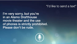 Siri has access to all of your personal information and she’s not afraid to use that info if push comes to shove. That’s the premise of this new “no texting in movie theaters” public service announcement put together by Alamo Drafthouse. The real voice of Siri, Susan Bennett, is featured in the PSA which will run before screenings of Her at all Alamo locations.