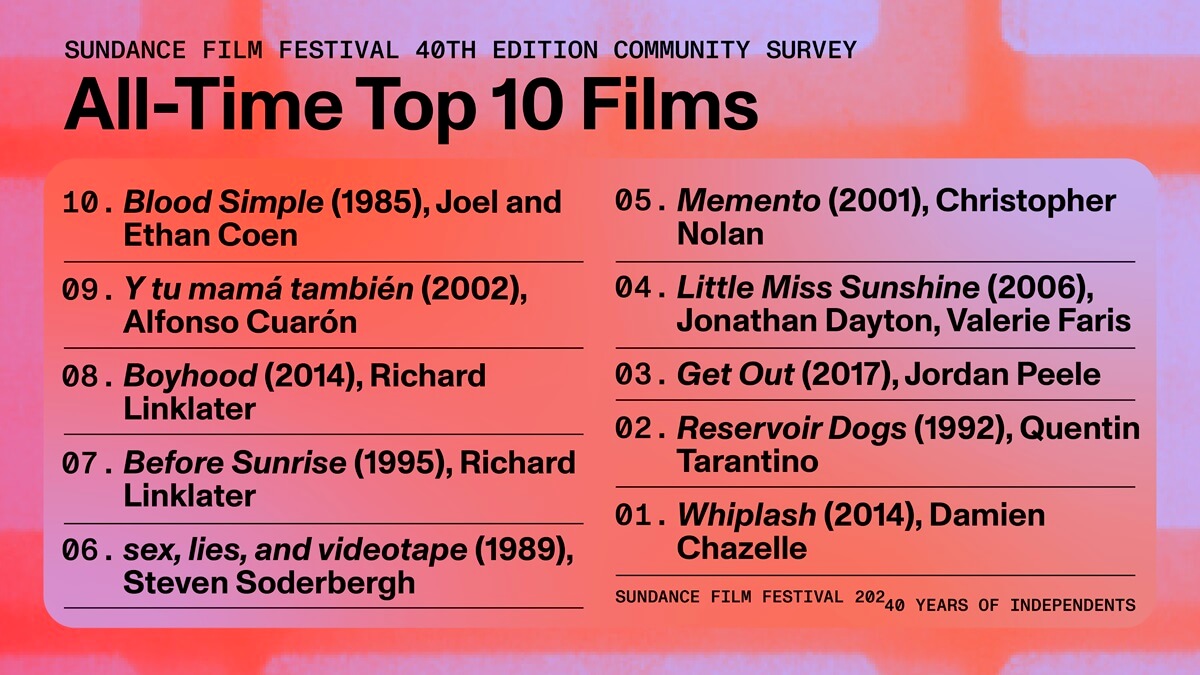 The Sundance Film Festival is celebrating its 40th edition with the 2024 festival running January 18th through 28th in Park City and Salt Lake City. In honor of the milestone event, Sundance called on the filmmaking community to put together a list of the top 10 feature films that have screened at the annual festival.