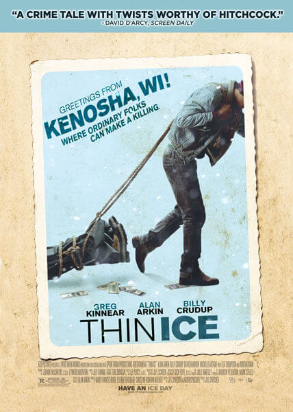 Mickey Prohaska (Greg Kinnear) is a small-time insurance agent looking for a way to jump-start his business, reunite with his estranged wife (Lea Thompson) and escape the frigid Wisconsin weather. This self-proclaimed master of spin believes that salesmanship is about selling a story — all he needs is a sucker willing to buy it. He hits pay dirt with a lonely retired farmer (Alan Arkin) who is sitting on something much bigger than an insurance commission. But Mickey’s attempt to con the old man spins out of control when a nosy, unstable locksmith (Billy Crudup) with a volatile temper dramatically ups the stakes, trapping him in a madcap spiral of danger, deceit and double-crossing. Blending dark comedy and delirious Midwestern noir, THIN ICE reaches a breaking point that no one — least of all Mickey Prohaska — could ever see coming.