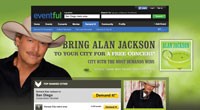 A new promotion had Country fans throughout the United States competing online for a free show by superstar Alan Jackson in their hometown. Hatched by the creative minds at Capitol Records and Eventful, the campaign required fans to use Eventful’s “Demand It!” service to vote for their city and encouraged them to promote the show to friends via social media, including Twitter and Facebook. The city with the most votes won the free show.