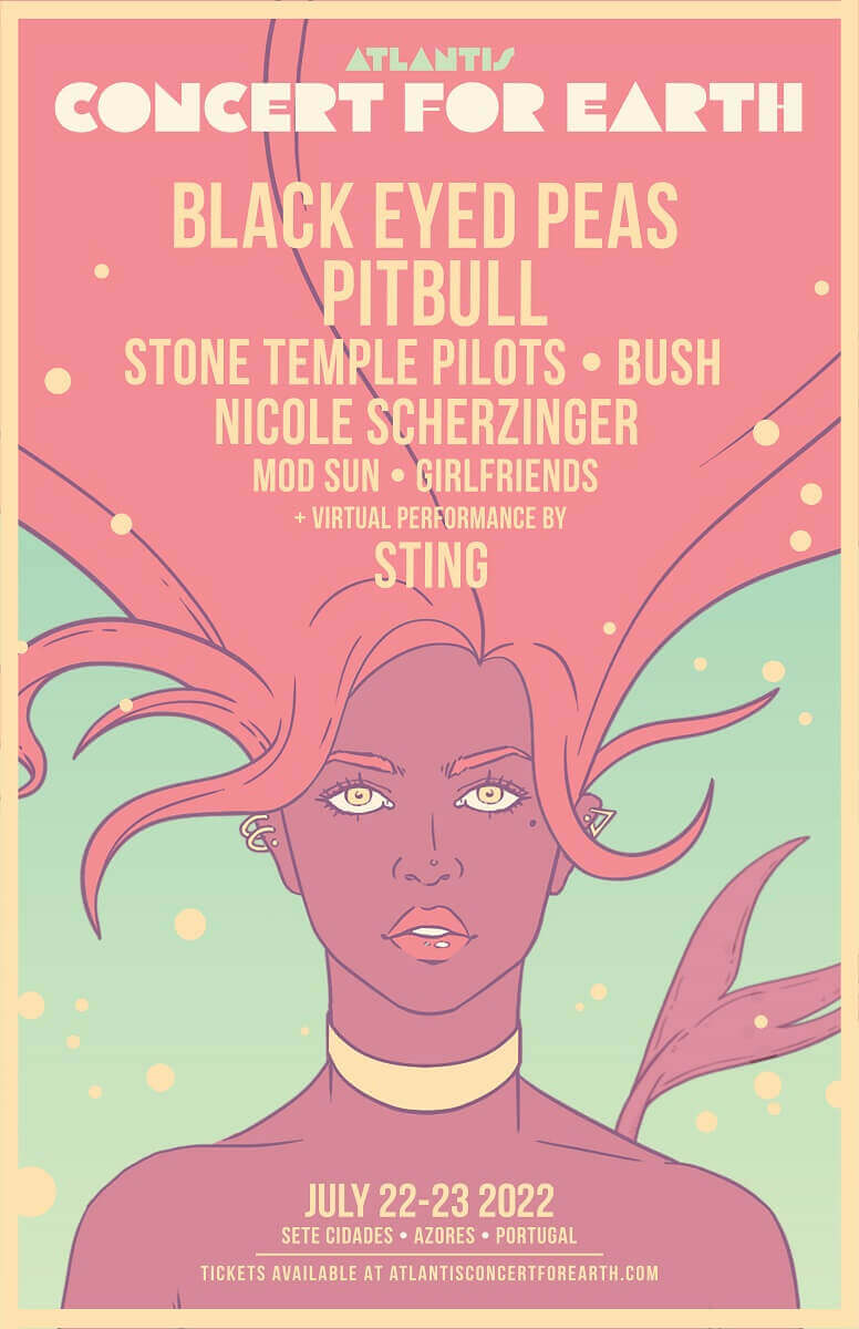 The inaugural “Atlantis Concert for Earth” will feature performances by Black Eyed Peas, Pitbull, Stone Temple Pilots, Bush, Mod Sun, and Girlfriends. The non-profit concert promotes global conservation and will take place in Sete Cidades in Azores, Portugal on July 22-23, 2022.