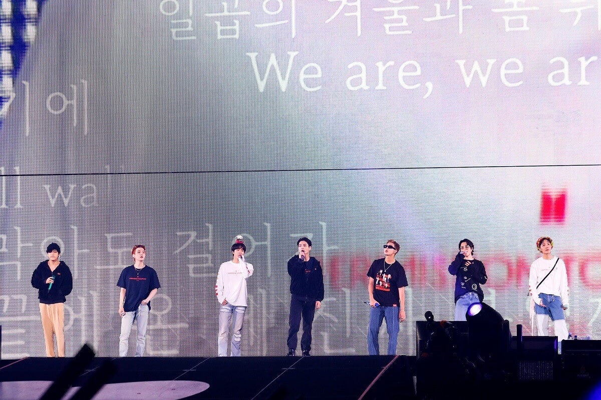 Before closing the show, the seven members took the time to talk to the fans who were all on their feet listening intently. One speech in particular that stood out for me was member Suga saying, “For me – and for all seven of us – this ‘Permission to Dance’ performance was a big challenge. Let me tell you why we set this up with no solo songs and just our group songs. We prepared everything from the cue sheets to the devices, the stages, because we’ve been away for two years and we wanted your full attention and your full focus on all seven of us.”