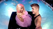 With ‘found footage’ kicking off the “Beauty and the Beat” video, Justin Bieber goofs around poolside with back-up dancers and a brief appearance by Nicki Minaj. Leading up to the video’s release, Bieber had reported that his computer had been stolen. @gexwy was responsible for the theft and had vowed to release embarrassing footage on Friday, October 12th at noon. But it was all part of the video release campaign, and the footage was actually included in the “Beauty and the Beat” video which was co-directed by Bieber and Jon Chu.