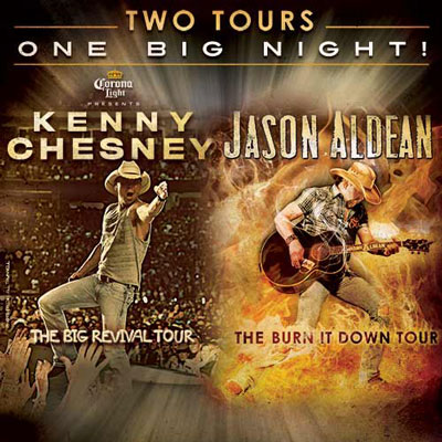 Fans of both Jason Aldean and Kenny Chesney will have the opportunity to see both Country superstars in concert together in 2015. Aldean and Chesney just announced they’ll be merging their The Burn It Down and The Big Revival tours for 10 stadium shows next year. Details on tickets and on special guests will be released soon.