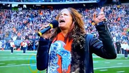 Had Steven Tyler been a contestant on American Idol, odds are he wouldn’t have received a golden ticket to Hollywood for this rendition of “The Star-Spangled Banner” at the Baltimore Ravens vs New England Patriots AFC Championship game on January 22, 2012. Tyler did miss up a line from the song and, of course, he sang it like a rocker would – lending it his Steven Tyler/Aerosmith-ish vibe which didn’t sit well with some fans.