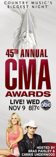 The 45th Annual CMA Awards will take place on Wednesday, November 9, 2011 at the Bridgestone Arena in Nashville, Tennessee. Brad Paisley and Carrie Underwood are once again teaming up to host the show.