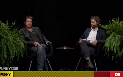 Between Two Ferns host Zach Galifianakis interviews Brad Pitt about his new movie which he believes is named Furry, why he doesn’t take showers, and what it’s like living in his wife’s shadow. He also serenades Pitt with the theme from Friends and asks if seeing Angelina Jolie for the first time was like Ross falling for Rachel (played by Pitt’s ex, Jennifer Aniston). There’s even a surprise appearance by Louis C.K. doing stand-up in this hilarious Funny or Die video.