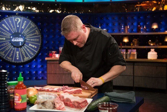 In each episode, the competing chefs must hold their own as they navigate through three grueling rounds of the casino-style, culinary competition. Round one features the Kitchen Casino Slot Machine. The chefs take a spin and reveal three categories – cuisine, ingredient and theme – which must inspire their dish for the 30 minute round. In round two, remaining three contestants have 40 minutes to prepare a dish using the same assigned protein from the previous round – but with a game changing twist. During this round the kitchen stations spin like a roulette wheel leaving the chefs in front of a new station to continue cooking. The wheel turns unexpectedly and the chefs are judged by the dish that ends up in front of them at the end of the round. The final round is a game of Chef Poker. The remaining two contestants try their hand at incorporating an ingredient into their dish depending on the card they are dealt. Will they hold their hand or take a gamble? Their decision could make or break their dish and their chance at winning the jackpot.