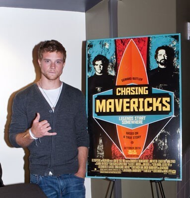 Chasing Mavericks is the inspirational true story of real life surfing phenom Jay Moriarity (played by Weston). When 15 year old Jay discovers that the mythic Mavericks surf break, one of the biggest waves on Earth, is not only real, but exists just miles from his Santa Cruz home, he enlists the help of local legend Frosty Hesson (played by Gerard Butler) to train him to survive it. As Jay and Frosty embark on their quest to accomplish the impossible, they form a unique friendship that transforms both their lives, and their quest to tame Mavericks becomes about far more than surfing.