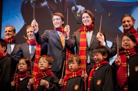 Harry Potter fans in costume were on hand at the announcement to cheer the news and see James and Oliver Phelps – Fred and George Weasley in the film series – help reveal the news. And as with the Wizarding World theme park in Orlando, Florida, the new park will “faithfully and authentically bring to life the stories created by J.K. Rowling in her books and captured on screen in Warner Bros’ films.”