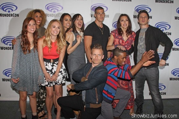 Gallery of photos of Star-Crossed cast members Matt Lanter, Aimee Teegarden, Greg Finley, Natalie Hall, Titus Makin Jr, Malese Jow, Chelsea Gilligan, Jesse Luken, Victoria Platt, and Brina Palencia at the 2014 WonderCon in Anaheim, CA. (Photos © Richard Chavez / Showbiz Junkies)
