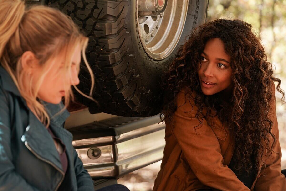 The final seconds of ABC’s Big Sky season two episode five found Travis blowing Cassie and Jenny’s cover. Season two episode six – “Heart-Shaped Charm” – picks up seconds later with guns raised in a stand-off. Cassie (Kylie Bunbury) and Jenny (Katheryn Winnick) reluctantly lower their weapons and leave, but Jenny gives Travis (Logan Marshall-Green-2) a withering glance as she walks away.