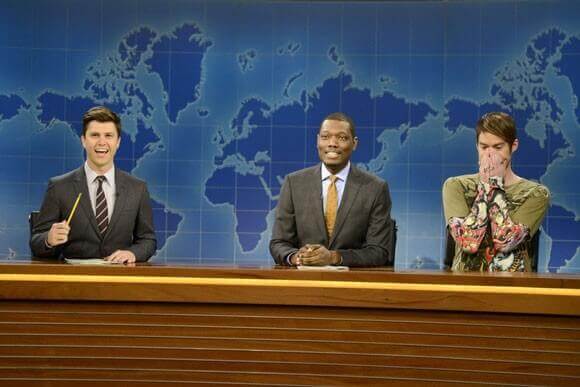 Former Saturday Night Live cast member Bill Hader handled his first gig hosting the show with the October 11, 2014 episode and, of course, he slipped back into his Stefon character. Fan favorite Stefon joined the new Weekend Update co-hosts to chat about the happening spots in New York City and for some reason former MTV veejay Dan Cortese seemed to get brought up a lot.