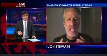 Jon Stewart checked up on John Oliver and The Daily Show via Skype, telling Oliver he’s doing a “phenomenal” job. But, Stewart also admitted he doesn’t actually watch it all the time because it’s just too weird. “It’s like watching someone have sex with your wife’s desk,” said Stewart. He went on to say he misses the show and was checking in to say he’s thinking about everyone.