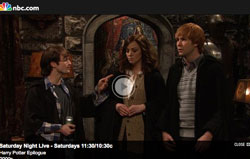 Harry Potter star Daniel Radcliffe hosted the January 14, 2012 episode of Saturday Night Live, and of course there was a sketch with Radcliffe returning to Hogwarts. How could there not be? Surrounded by SNL cast members playing Harry’s old friends Hermione and Ron, his nemesis Draco Malfoy, and the deceased Snape (Bill Hader doing a very good Alan Rickman impression), the Chosen One seems determined to live in the past and not let anyone forget how he saved the world from the evil Lord Voldemort.