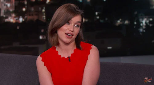 Emilia Clarke stopped by Jimmy Kimmel Live to chat about the new Terminator film, Terminator Genisys, and revealed that while shooting the sci-fi action film she was staying in a haunted house owned by her Game of Thrones co-star Michiel Huisman. Clarke also explained how her haunted house led to a 3am call to Terminator Genisys co-star Jai Courtney and a trip to Home Depot disguised as a So. California Valley Girl a la Clueless.