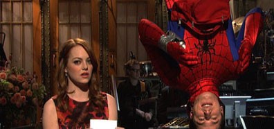 Andy Samberg dons a Spidey outfit, hangs upside, and tries to convince Saturday Night Live host Emma Stone that he’d be her perfect co-star in 2012’s The Amazing Spider-Man in this SNL video. Unfortunately for Samberg, another Andy – Andrew Garfield (The Social Network) – beat him to the punch.
