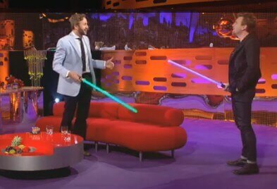 If you aren’t a fan of Ewan McGregor – which I have no clue why you wouldn’t be, but to each his or her own – this video of the actor playing with lightsabers might help change your mind. McGregor stopped by The Graham Norton Show on BBC and showed off his lightsaber skills.