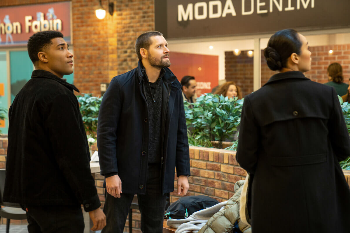 Carter Redwood as Special Agent Andre Raines, Luke Kleintank as Special Agent Scott Forrester and Alain Blazevic as Lorik Abazi in episode 13 (Photo: Nelly Kiss © 2022 CBS Broadcasting Inc)