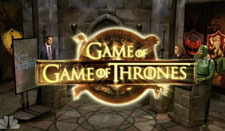 Game of Thrones‘ Jaime Lannister – Nikolaj Coster-Waldau – even shows up in the name-this-person portion of the Game of Game of Thrones quiz show.