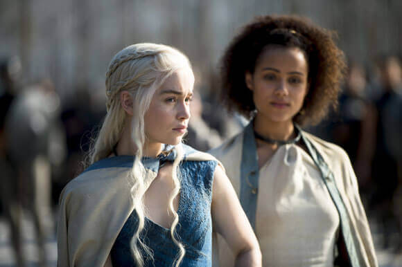 Tyrion (Peter Dinklage) welcomes a guest to King’s Landing. At Castle Black, Jon Snow (Kit Harington) finds himself unwelcome. Dany (Emilia Clarke) is pointed to Meereen, the mother of all slave cities. Arya (Maisie Williams) runs into an old friend.