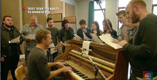 Coldplay received some much-needed help with their Game of Thrones: The Musical production, with cast members from the HBO pitching in to sing the new tunes. Kit Harington (Jon Snow) rocked the microphone, singing “Wildling, you pull your bowstring” (to the tune of “Wild Things”) to Rose Leslie (Ygritte).