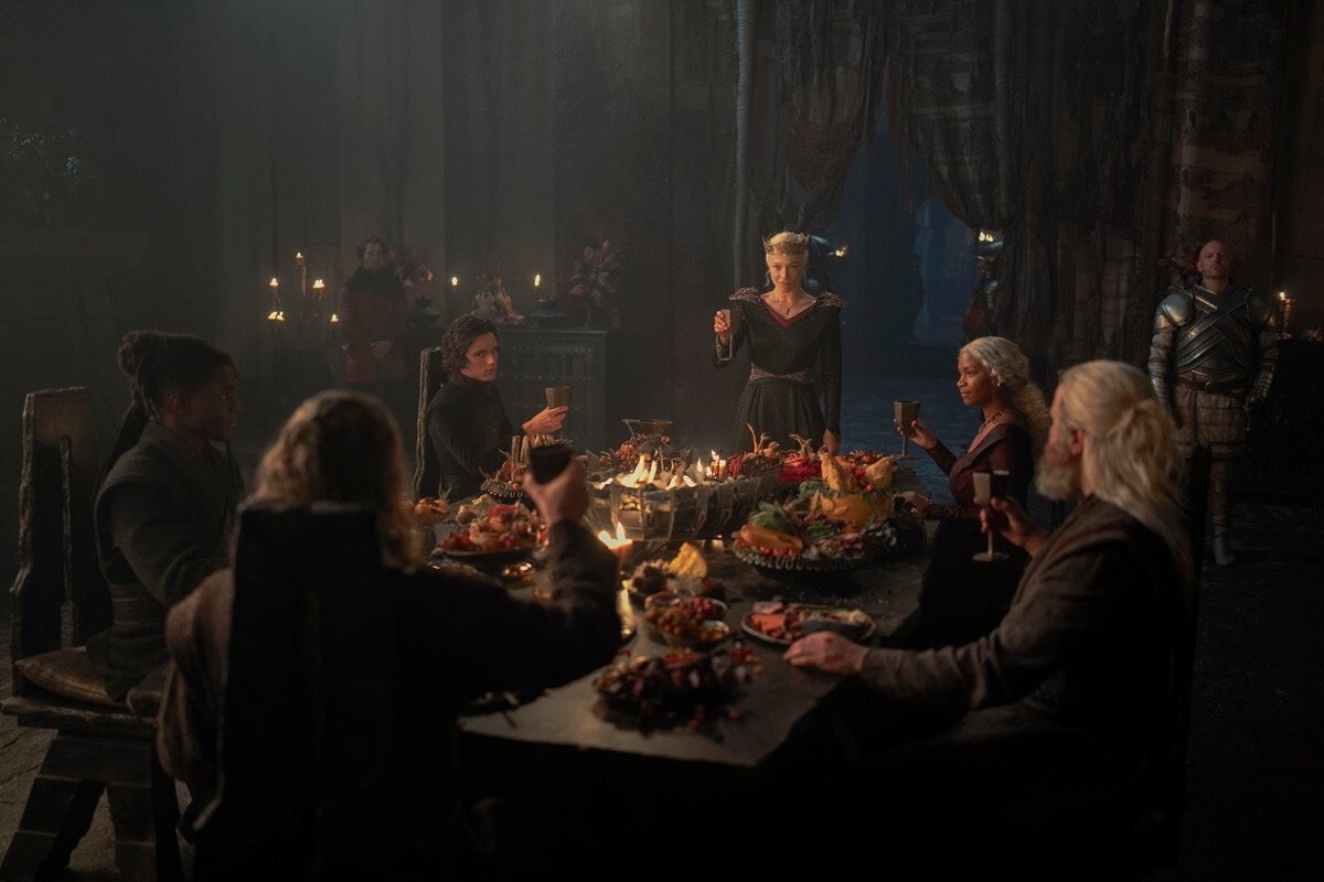 Ulf continues to be a rude idiot at dinner as Queen Rhaenyra rises for a toast to their new riders. They accomplished something special, and they’ve been given a power few have known. If they serve her well, she’ll make Ulf, Hugh, and Addam knights of the realm. She announces they need to strike in two days, with their targets being Oldtown and Lannisport. That means their training must speed up, so they’ll be ready to take a dragon into battle.