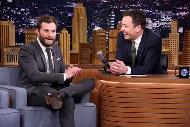 Fifty Shades of Grey star Jamie Dornan dropped by The Tonight Show Starring Jimmy Fallon to discuss the new R-rated (for “unusual behavior”) film coming to theaters on February 13th. While visiting with Fallon, Jimmy challenged him to a game of “Fifty Accents of Grey” in which they had to take turns reading select passages from the book while using different accents.