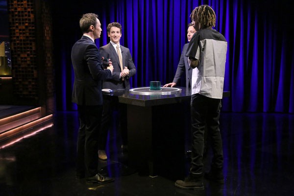 Jim Parsons stopped by The Tonight Show Starring Jimmy Fallon to promote his animated movie Home, heading to theaters on March 27, 2015, and while there he had the opportunity to team up with Fallon on a highly competitive game of Catchphrase versus The Divergent Series: Insurgent star Miles Teller and rapper Wiz Khalifa. All four were good at the game, although it’s apparent that Khalifa doesn’t listen to Taylor Swift, and Parsons isn’t certain about the name of popular dances.