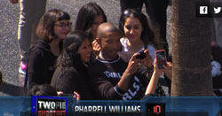 Jimmy Kimmel and Pharrell Williams took to the streets in Hollywood for a low-key (at least on Pharrell’s part) “Twofie Shootout.” The goal of the contest was to take as many twofies with random strangers as possible during a 30 second period, and while Kimmel rushed around Hollywood Blvd., Williams opted to shoot his photos basically within a small circle of fans. So which strategy worked the best? Watch the video for the answer.