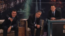 Stewart and Colbert talked about the effects of Hurricane Sandy, promises of electricity by Christmas, and how they initially met. Kimmel also questioned them on their geekiness, their friendship, Colbert’s visit to Peter Jackson’s The Hobbit set, and politics.