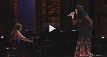 Katy Perry was joined by Jodi DiPiazza to perform “Firework” on Comedy Central’s Night of Too Many Stars: America Comes Together for Autism Programs hosted by Jon Stewart. The star-studded event raises money for autism programs, and DiPiazza – who says Perry is one of her favorite singers – was diagnosed with autism at a young age. Perry performs a restrained version of her song, never overwhelming DiPiazza who sings and plays the piano on the popular song.