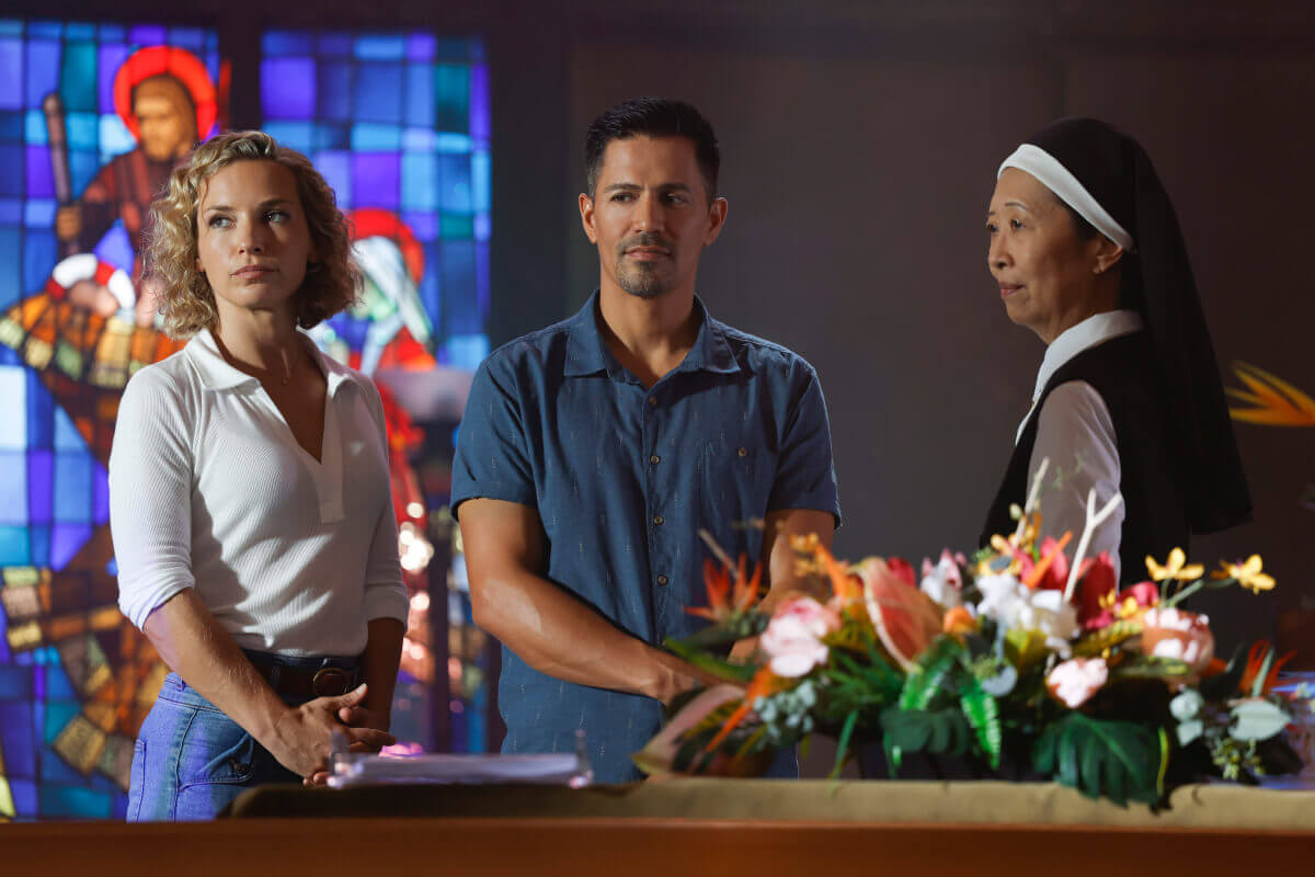 Magnum and Higgins help out a nun on CBS’s Magnum P.I. season four episode 11, “If I Should Die Before I Wake.” Directed by Lin Oeding from a script by Gene Hong and Andrew Jackson, season four episode 11 will air on Friday, January 14, 2022 at 9pm ET/PT.