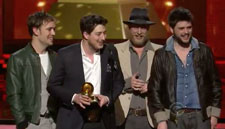 Adele had the honor of announcing the Album of the Year winner at the 2013 Grammys, joking that whoever wins will go on to have a fabulous year – or get knocked up like last year’s winner. And in a field that included The Black Keys, fun., Frank Ocean, and Jack White, it was Mumford & Sons that took home the top honor. Taking the stage, the English folk band thanked the Grammys for recognizing British artists and thanked American audiences for embracing their work.