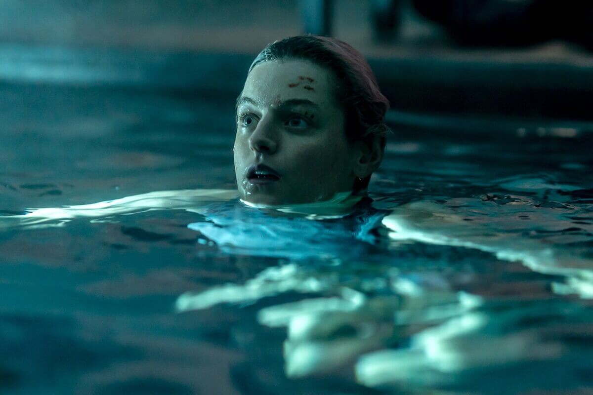 The suspense is getting intense on FX’s A Murder at the End of the World with just two episodes left. Episode six, “Crime Seen,” quickly reveals that Darby (Emma Corrin) survives after being trapped under a pool cover at the end of episode five. Lee (Brit Marling) and David (Raul Esparza) rescue her, but David leaves the two women alone.