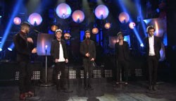 After joining Paul Rudd and the guys from Anchorman 2: The Legend Continues to sing “Afternoon Delight” during Rudd’s opening bit on Saturday Night Live, One Direction performed two songs on the December 7, 2013 episode. Keeping it simple, the guys didn’t use any dancers, costumes, or distracting set decorations and simply showed off their voices with “Story of My Life” and “Through the Dark.”