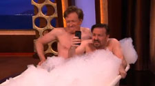 I’m not sure anyone was clamoring to see Conan O’Brien and Ricky Gervais strip to their undies, climb in a bathtub, and take a picture – but that doesn’t matter. They did it anyway while Gervais was a guest on Conan O’Brien’s show. Gervais loves to tweet unflattering pictures of himself, and this latest tub photo with Conan is no exception.