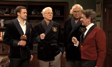 One of the best skits of the night found his fellow 5-timers welcoming him to the club. Steve Martin, Chevy Chase, Candice Bergen, Tom Hanks, Paul Simon, and Alec Baldwin showed up to take part in his special night. The ‘club’ skit also featured Martin Short and Dan Aykroyd as waiters (since they aren’t actually in the club).