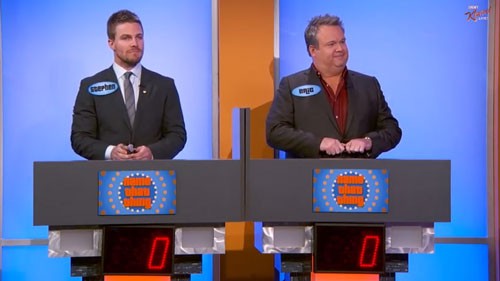 Stephen Amell from Arrow battled Modern Family‘s Eric Stonestreet in an intense six-minute game of “Name That Thing” on Jimmy Kimmel Live. The two men squared off in a contest of who could come up with the actual name of items on display, and both Amell and Stonestreet were stumped by the weird appearance of Dragon Fruit. But when it came to putting a name to a breast pump, Amell earned extra credit for knowing it was the battery-operated model.