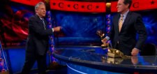 Colbert kept trying to convince Stewart that he was not, in fact, fine with losing this year, but Stewart showered Colbert with compliments – something Stephen wasn’t ready to accept. However, Stewart had a very good reason (in addition to their friendship) for being happy about The Colbert Report‘s win…