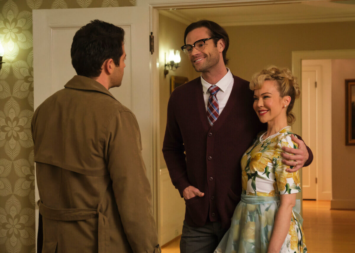 Castiel, who’s been playing the straight man for some episodes now, falls back into the weirdo role when he mistakes the store clerk’s wordplay for something else entirely, and he and Sam head off to the nearby town where the blown-up head dude had come from. When they arrive, they have the same reaction Marty McFly had in Back to the Future as the town resembles something out of a ‘50s comic book. Cas likens it to The Saturday Evening Post, which he admits he likes to look at while everyone’s asleep (remember how poor Cas doesn’t sleep?). Sam and Castiel pick up the first pasty-looking couple they find on the street to question of the happenings, only to find the straight-combed Justin Smith and his wife haven’t ever heard of what a cell phone is, much less offer something of substance.